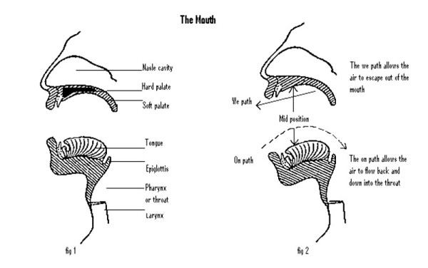 The “WE” path (w is a semi vowel) - sound escapes forward out of the mouth and is lost.
